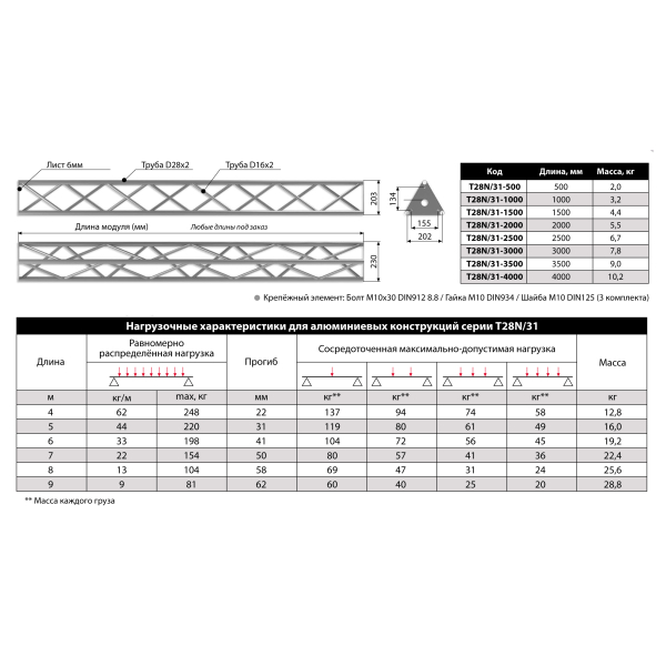 Крепежный элемент: Болт M10x30 DIN912 8.8 / Гайка М10 DIN934 / Шайба M10 DIN125.