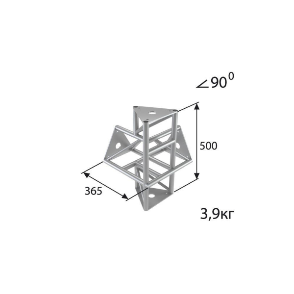 Стыковочный узел для 4-х ферм под 90 градусов, d28х2 \ d16х2мм. Крепежный размер 155мм, М10.