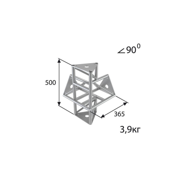 Стыковочный узел для 4-х ферм под 90 градусов, d28х2 \ d16х2мм. Крепежный размер 155мм, М10.