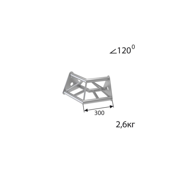 Стыковочный угол 120 градусов, d40х2 \ d16х2мм. Крепежный размер 142мм, М10.