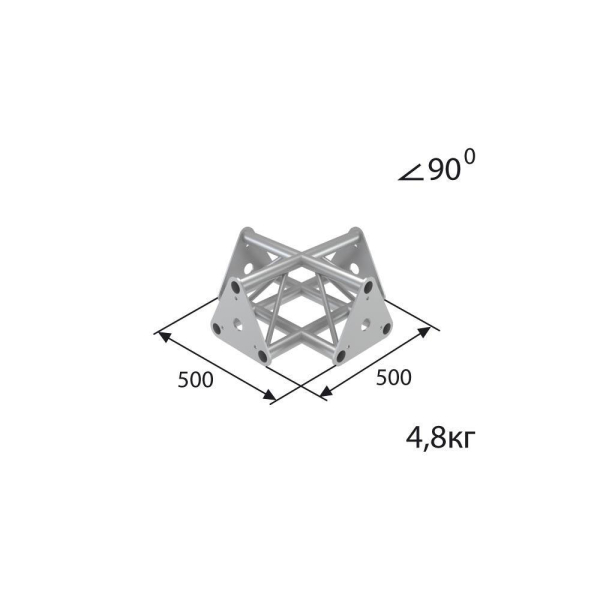 Стыковочный узел для 4-х ферм под 90 градусов, d40х2 \ d16х2мм. Крепежный размер 142мм, М10.