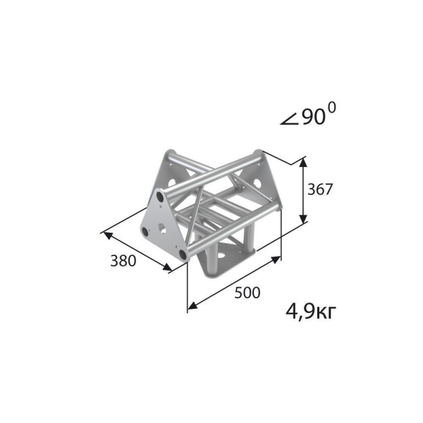 Стыковочный узел для 4-х ферм под 90 градусов, d40х2 \ d16х2мм. Крепежный размер 142мм, М10.