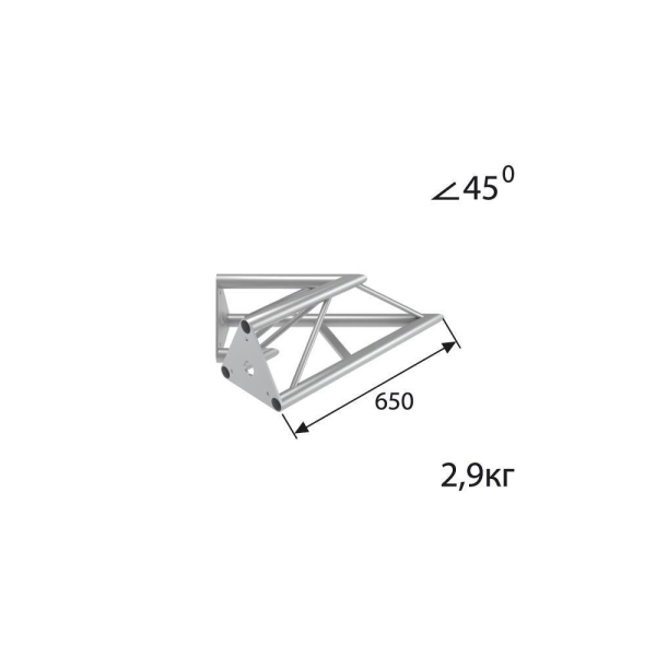 Стыковочный угол 45 градусов, d40х2 \ d16х2мм. Крепежный размер 142мм, М10.