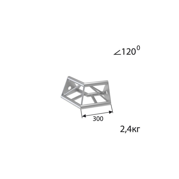 Стыковочный угол 120 градусов, d40х2 \ d16х2мм. Крепежный размер 142мм, М10.