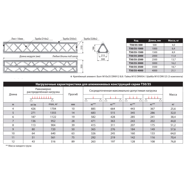 Крепежный элемент: Болт M10x35 DIN912 8.8 / Гайка М10 DIN934 / Шайба M10 DIN125.3 комплекта (в поставку не входят).
