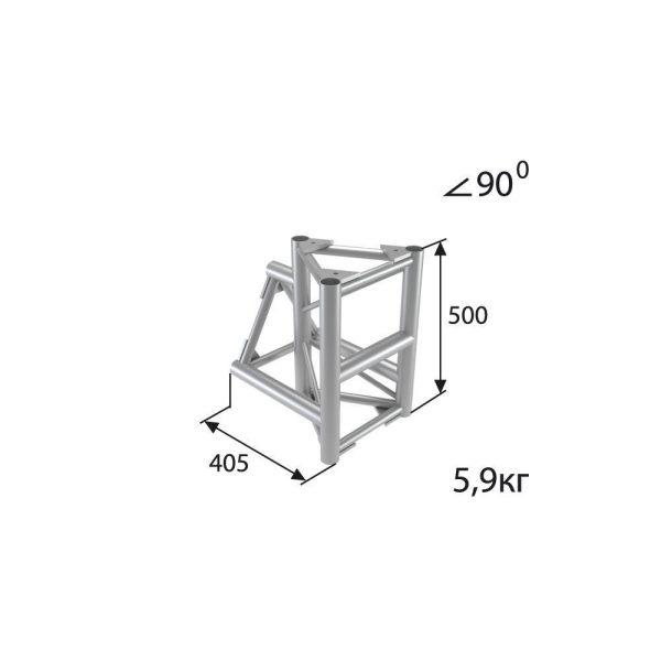 Стыковочный узел для 3-х ферм под 90 градусов, d50х3 \ d16х2мм. Крепежный размер 215мм, М10.
