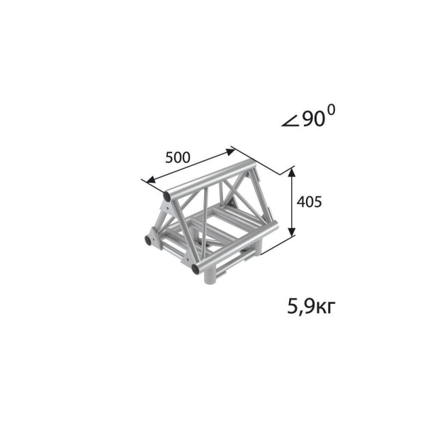 Стыковочный узел для 3-х ферм под 90 градусов, d50х3 \ d16х2мм. Крепежный размер 215мм, М10.