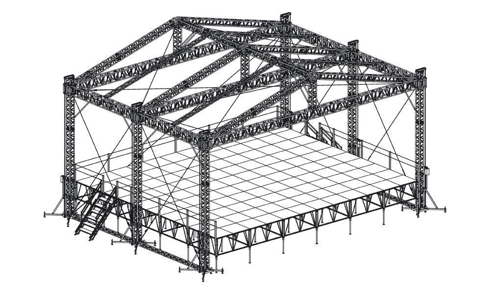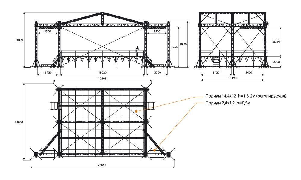 Сценический комплекс с замкнутым коньком с размером подиума 14,4 х 12 м, с электрической лебедкой