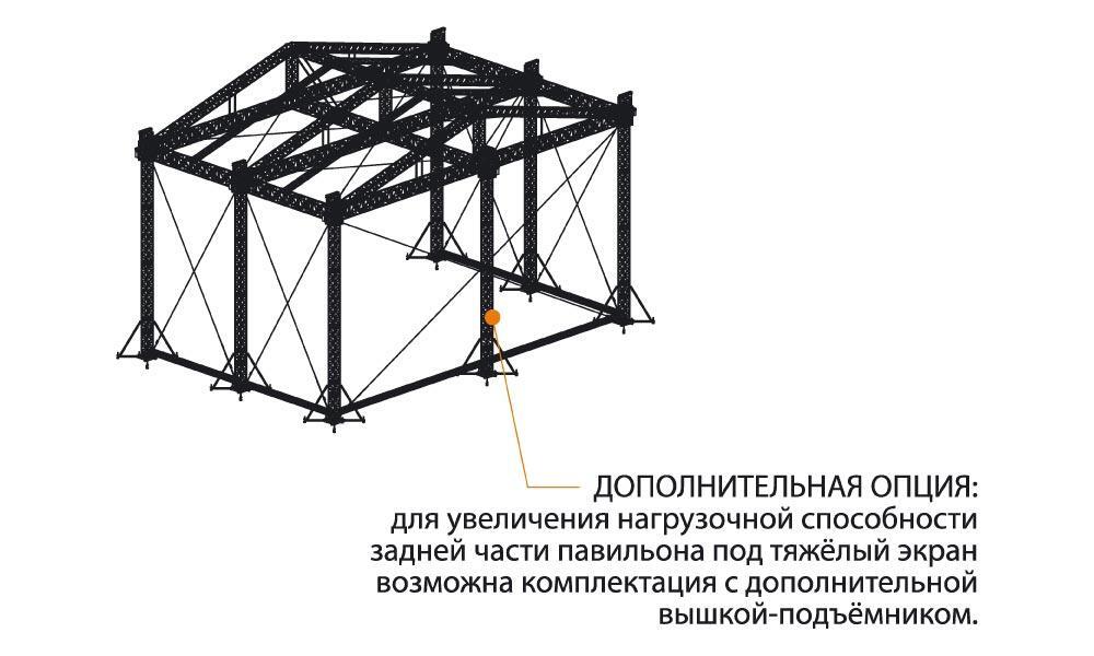 * При условии установки всех растяжек, соответствующей загрузке оснований и расчаливании павильона.