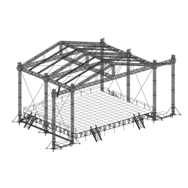 Сценический комплекс с замкнутым коньком с размером подиума 19,2 х 15,6 м, с электрической лебедкой и звуковыми порталами