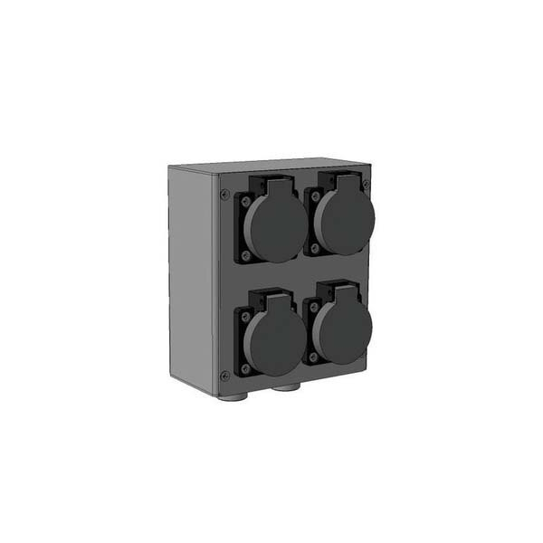 Сварной металлический корпус со съемной панелью, настенным креплением и патрубками для подсоединения труб диаметром 25 см.