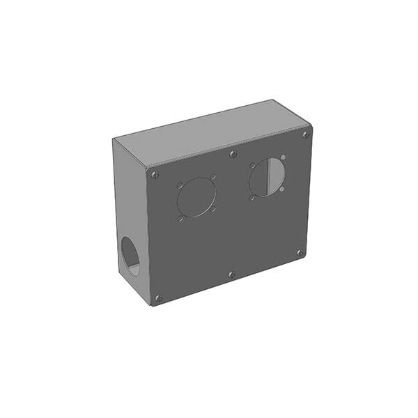Сварной металлический корпус со съемной панелью, монтируется на трубах прокладки кабелей и проводов.
