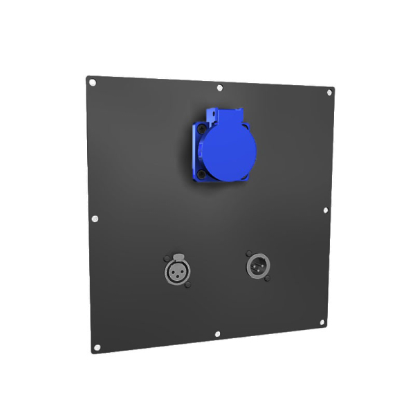 Панели выполнены из листовой стали и окрашены в черный цвет. Возможно изготовление панелей с различными разъёмами.