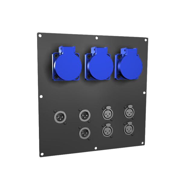 Панели выполнены из листовой стали и окрашены в черный цвет. Возможно изготовление панелей с различными разъёмами.