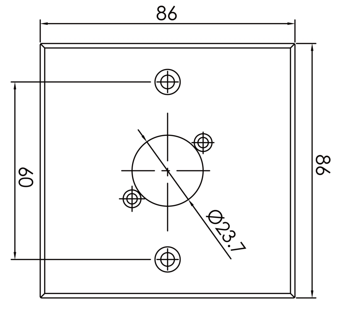 Алюминиевая настенная панель 86х86мм. на 4 отверстия.