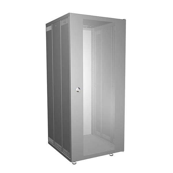 Шкаф рэковый напольный со стеклом, замком и задней стенкой для монтажа оборудования.