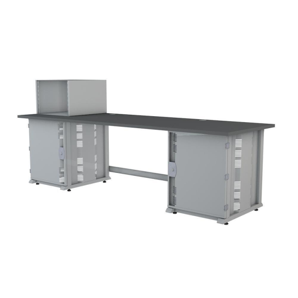 Стол оператора. Столешница 2500x800 мм, 2 рэк-тумбы 14U, съемная рэк-стойка 8U слева.