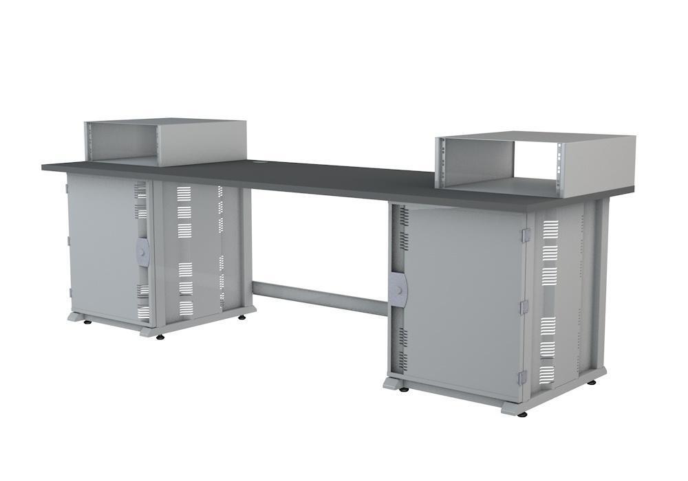 Стол оператора. Столешница 2500x800 мм, 2 рэк-тумбы 14U, 2 съемные рэк-стойки 4U.