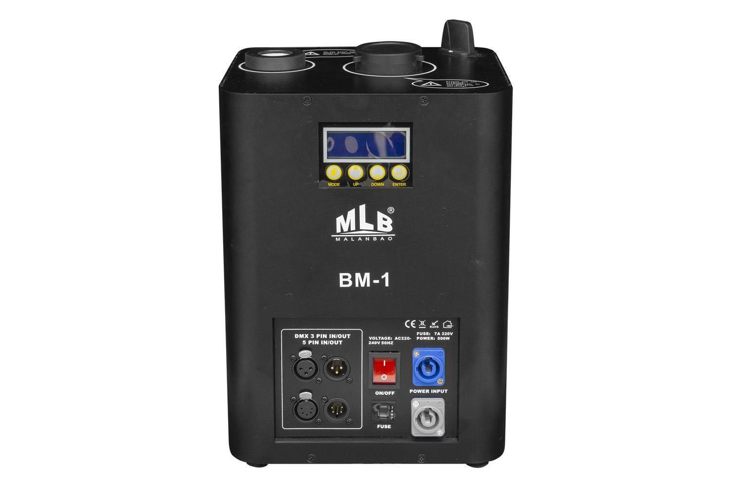 Новинка 2019 года от MLB – генератор холодных искр BM-1. Прибор форм-фактора колонного типа производит фонтан холодных искр высотой от 1,5 до 5 метров. Диапазон высот фонтана холодных искр зависит от типа используемого расходного материала – титановой крошки (Titanium Composition). Прибор оснащен LCD-дисплеем для быстрой и легкой настройки параметров, управление может осуществляться как c дистанционного радио ПДУ, так и по протоколу DMX. Для удобной коммутации группы приборов предусмотрены разъёмы сквозного питания типа PowerCon и трех-и пятипиновые сигнальные разъёмы XLR.