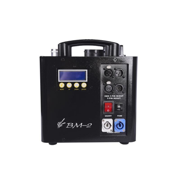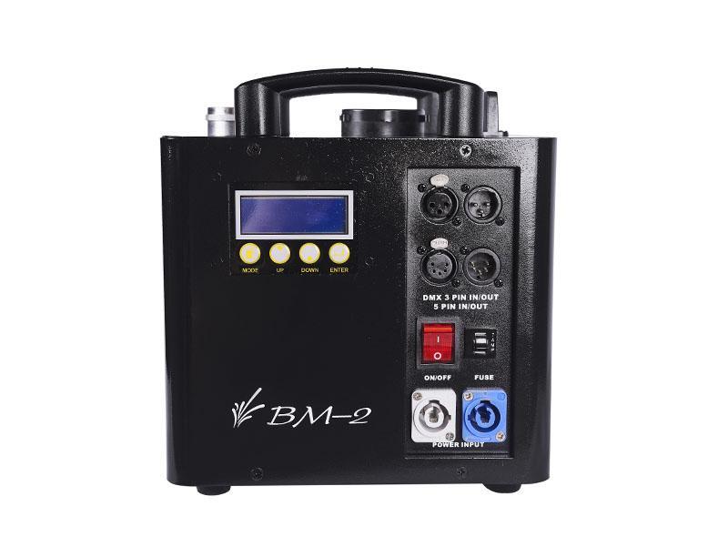 Новинка 2021 года от MLB – генератор холодных искр BM-2. В отличие от генератора BM-1 прибор производит ниспадающий фонтан холодных искр высотой от 2 до 4 метров. Длина фонтана холодных искр зависит от типа используемого расходного материала – титановой крошки (Titanium Composition). Прибор оснащен LCD-дисплеем для быстрой и легкой настройки параметров, управление может осуществляться как c дистанционного радио ПДУ, так и по протоколу DMX. Для удобной коммутации группы приборов предусмотрены разъёмы сквозного питания типа PowerCon и трех-и пятипиновые сигнальные разъёмы XLR.