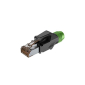 Ethernet Разъем RJ45(часть A) CAT5e, 150 МГц, макс. AWG26, металлический зажим, с удобным держателем сердечника провода (деталь B), с нейлоновым защитным корпусом (деталь C) со специальной системой зажима кабеля, подходит для макс. диаметр кабеля 6,8 мм. Диаметр проводника: 0,9-1,0мм