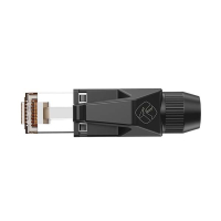 Ethernet Разъем RJ45(часть A) CAT5e, 150 МГц, макс. AWG26, металлический зажим, с удобным держателем сердечника провода (деталь B), с нейлоновым защитным корпусом (деталь C) со специальной системой зажима кабеля, подходит для макс. диаметр кабеля 6,8 мм. Диаметр проводника: 0,9-1,0мм