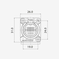 Разъем RJ45 панельный, гнездо, тип-D, розетки соответствуют CAT5e согласно стандарту TIA / EIA 568-C.2 и ISO / IEC1 1801, возможность крепления для разъема RJ45 и разъема RJ45 типа XLR.