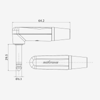 Разъем, 6,3mm mono Male Jack(угловой) для кабеля до 7,5мм, цвет: серый.