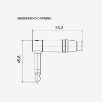 Разъем, 6,3mm stereo Male Jack(угловой). Цвет: черный, покрытие контактов: никель. Максимальные размер кабеля: 7мм.