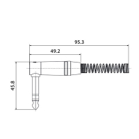 Разъем, 6,3mm stereo Male Jack(угловой) с пружиной. Цвет: черный, покрытие контактов: никель. Максимальные размер кабеля: 7мм с пружиной, 8,5мм без пружины.