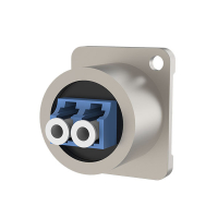 Проходной панельный волоконно-оптический разъем LC Duplex.