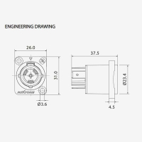 Разъем панельный типа powercon, пыле и влаго защищенный(IP65)+силиконовая заглушка, 3-х контактный, "female", черный.