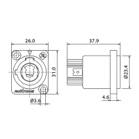 Разъем кабельный типа powercon(Out), пыле и влаго защищенный (IP65).