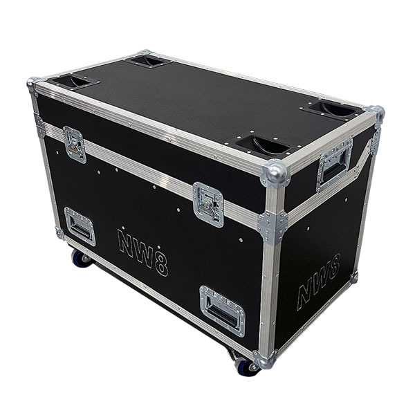 Транспортный кофр под 2-а прибора SS9681XLEM, дополнительный отсек, чаши под колеса, крышка откидная со смещенной осью вращения, гравировка на стенках, на колесах ф100мм (2-а колеса с тормозом). Кейс спроектирован по заданию проката.