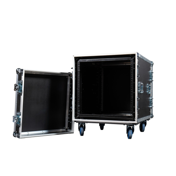 Рэковый кейс 10U, глубина 480 мм, DIN рейка с 2-х сторон на раме АНТИ-ШОК, ламинированная фанера 9 мм, с колесами d 100 мм, 2 колеса с тормозом.