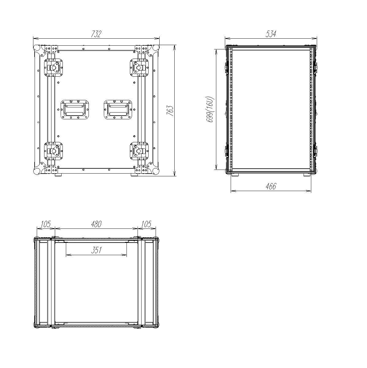 Рэковый кейс 16U, глубина 480мм, DIN рейка с 2-х сторон, ламинированная фанера 9мм.