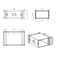 Рэковый кейс 6U, глубина 550мм, DIN рейка с 2-х сторон, ламинированная фанера 9мм.
