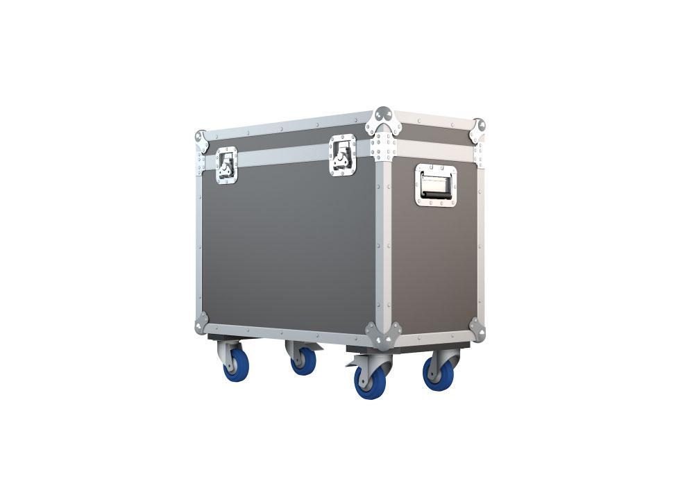 Транспортный кейс, внутренний размер 783 х 370 х 580 мм, ламинированная фанера 9 мм, с колесами d100 мм, 2 колеса с тормозом, крышка на петлях.