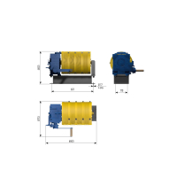 | Наименование | Максимальное тяговое усилие, кг | Количество секций на барабане | Канатоемкость, м | Диаметр каната, мм | Скорость намотки каната на барабан, м/с | Мощность электропривода, кВт | Масса лебедки со шкафом управления, кг |
