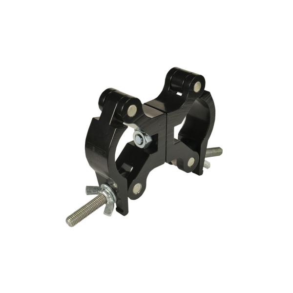 Алюминиевый сдвоенный поворотный хомут шириной 30 мм на трубу d40-50мм. Допустимая нагрузка 180 кг. Цвет - Черный.