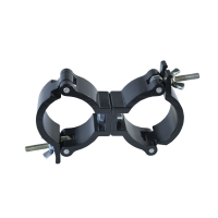 Алюминиевый сдвоенный поворотный хомут облегченный, шириной 30 мм на трубу d48-51мм. Допустимая нагрузка 75 кг. Цвет - Черный.