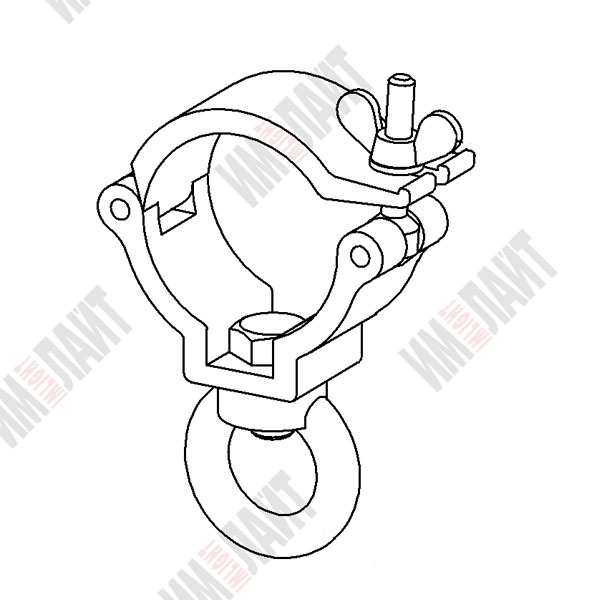 Алюминиевый хомут с рым-гайкой М10 облегченный, шириной 30 мм на трубу d48-51мм. Допустимая нагрузка 75 кг. Цвет - Черный