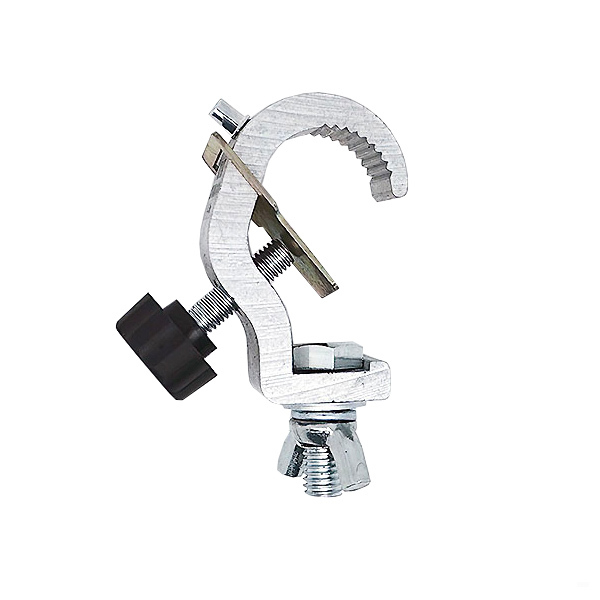 Алюминиевая струбцина крюк шириной 25 мм с винтовым фиксатором для трубы d28–30 мм упорная пластина. Допустимая нагрузка 70 кг.