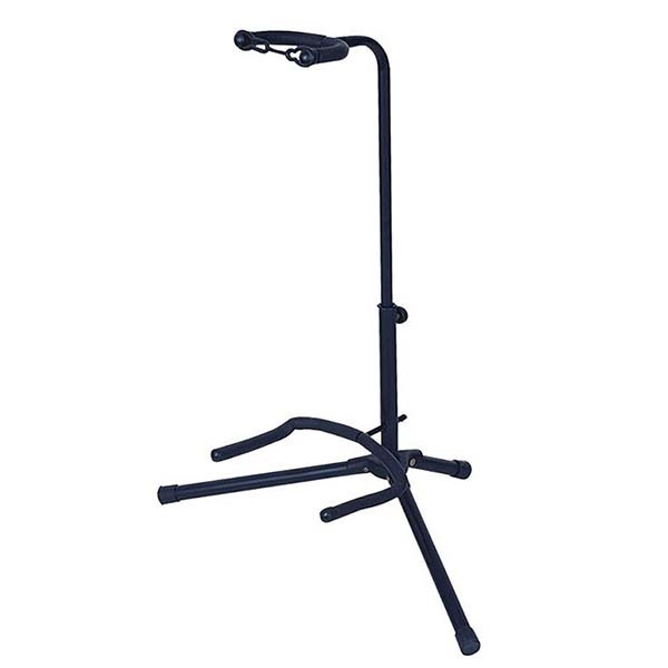Стойка регулируется под различные размеры гитары, специальные мягкие резиновые покрытия и ремешок защищают инструмент.
