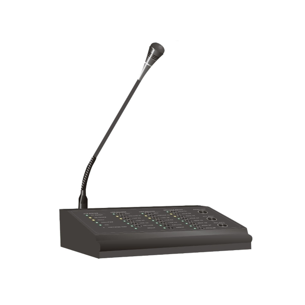 Микрофонная консоль поддерживает 12 зон трансляции.