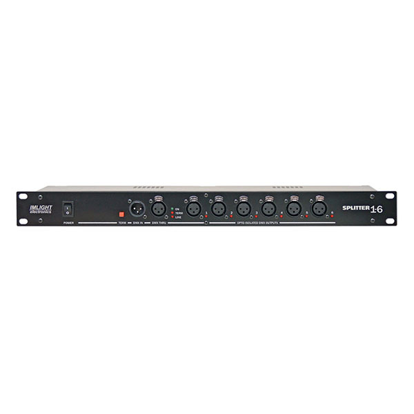 Блок разветвления/усиления сигнала DMX-512, 1 вход, 1 сквозной, 6 выходов, разъемы XLR 3pin, исполнение корпуса рэковое