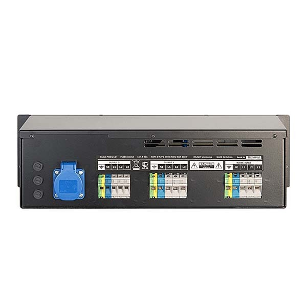 Блок распределения питания PWD 3-63i предназначен для измерения электрических паратметров питающей сети и распределения питающего напряжения между потребителями в осветительных системах, системах озвучивания помещений при использовании последних на театральных и концертных площадках, в домах культуры, дискотеках, ресторанах и т.п.