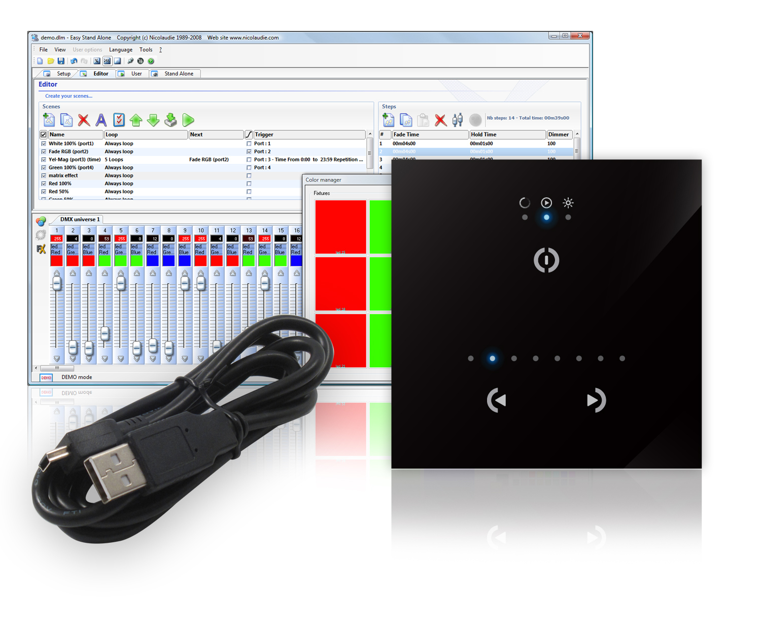 STICK-GU2 - наиболее доступная модель сенсорного контроллера в линейке STICK. Совместим с ПО ESA и ESA2. Простое и удобное решение для управления 128 каналами DMX интерьерного и экстерьерного осветительного оборудования.