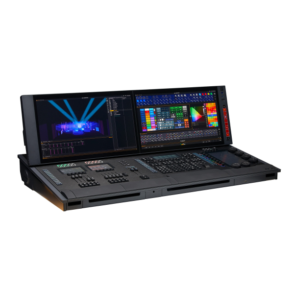 Световая консоль, 24576 каналов управления. 2 сенсорных дисплея 24", 10 моторизованных фейдеров