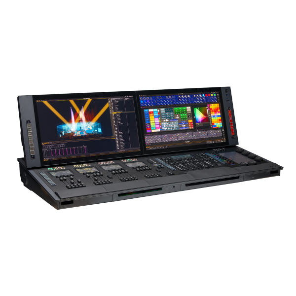 Световая консоль, 24576 каналов управления. 2 сенсорных дисплея 27", 20 моторизованных фейдеров